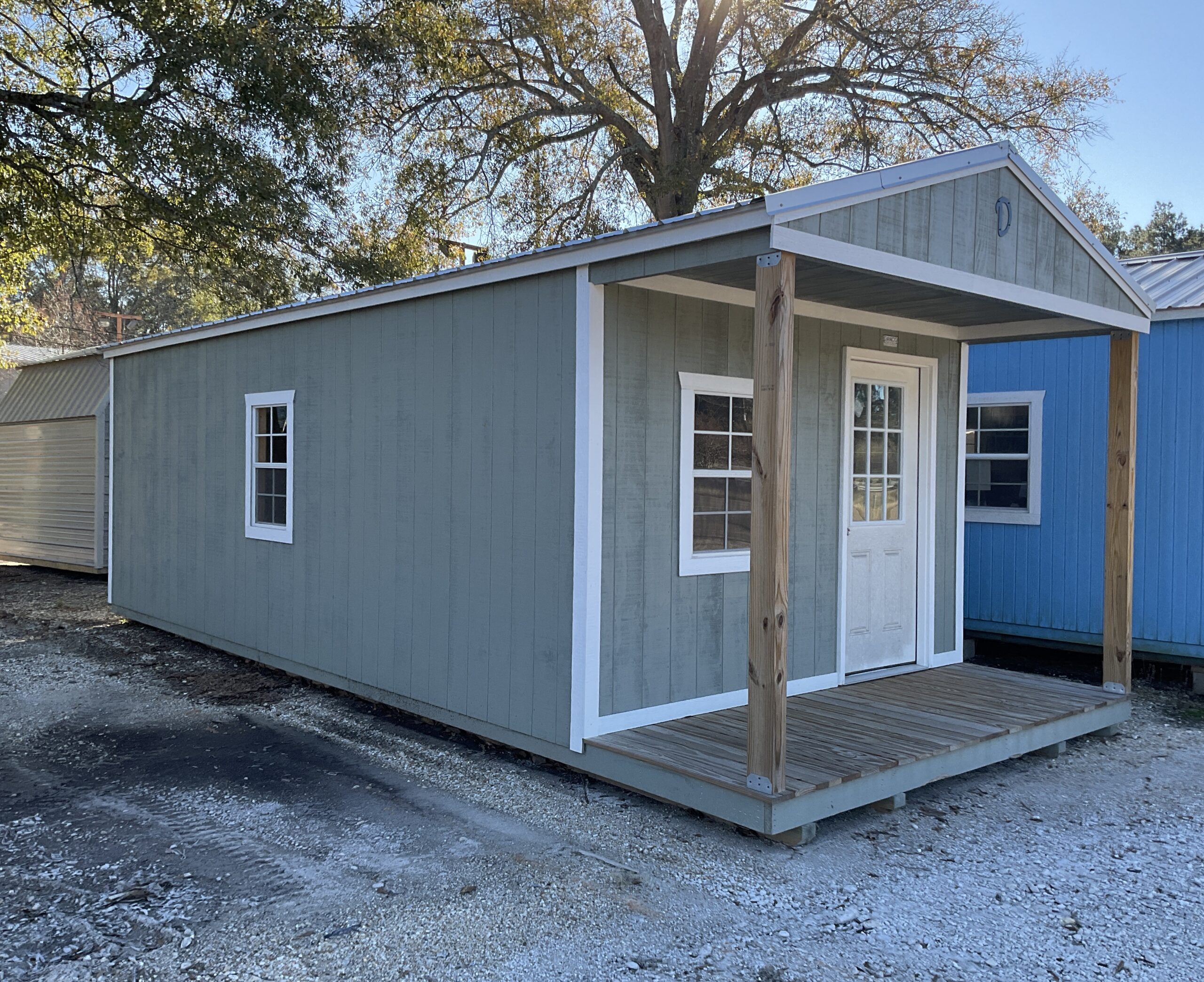 | 12' x 28' Cabin C-240732-1228-011425-MS Step onto the front porch and you can almost feel your shoulders relax. This cabin isn’t just a structure—it’s a retreat waiting to happen. Whether you’ve been dreaming of a quiet place to unplug, a weekend escape close to home, a cozy guest space, or a peaceful home office that finally gives you some separation from the noise of daily life, this cabin creates that opportunity. The soft Evergreen Fog exterior with crisp white trim gives it a calm, welcoming presence that feels at home in the woods, by the water, or in your backyard. It’s the kind of space that invites you to slow down, breathe a little deeper, and make room for the things you’ve been meaning to enjoy—whether that’s rest, creativity, or simply having a place that’s truly your own.
